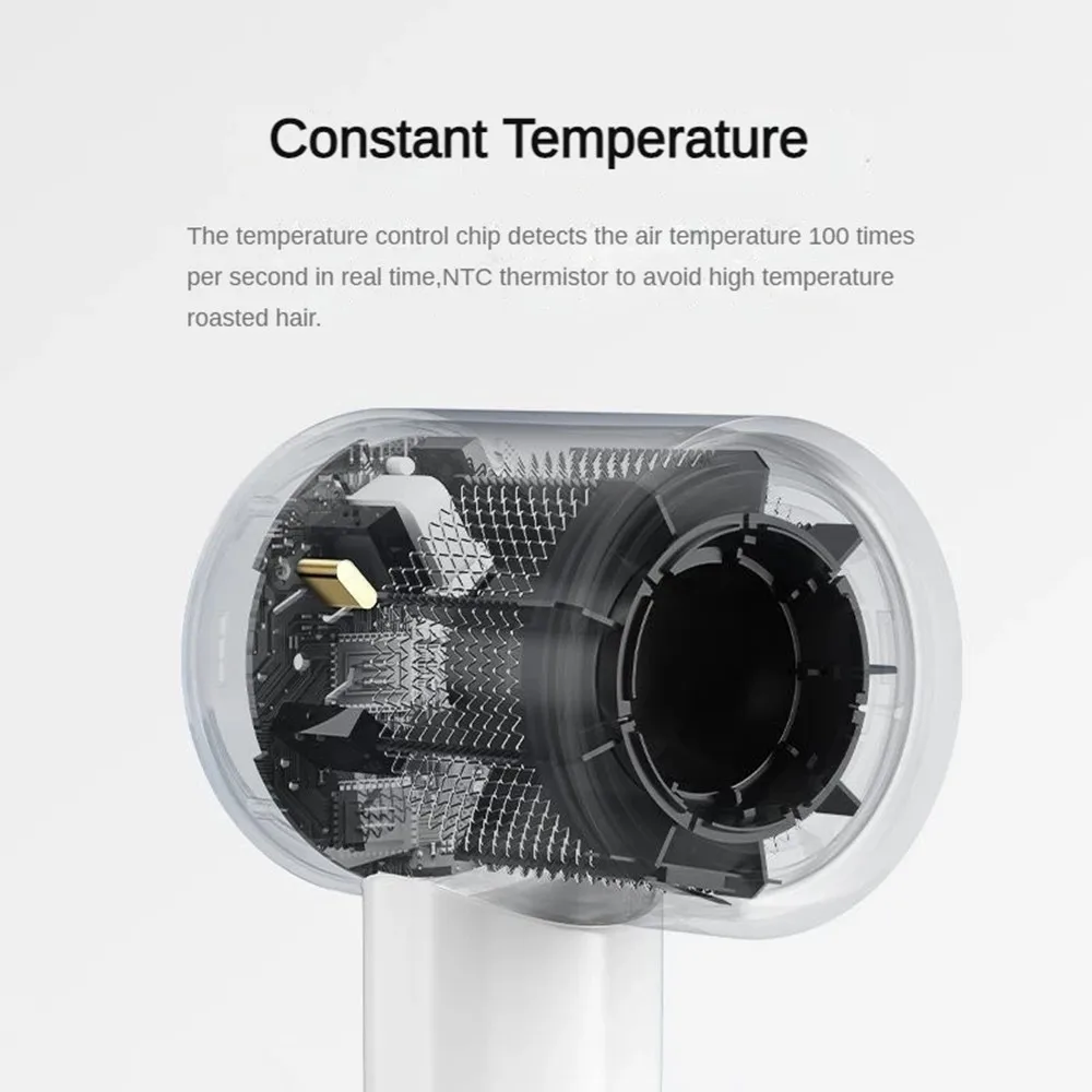 Equipped with a CNC precision motor, with a stable speed of up to 110,000 RPM, it offers a stronger airflow sensation. The air outlet speed can reach up to 62 meters/second, quickly removing moisture from your hair, providing a fast drying experience.